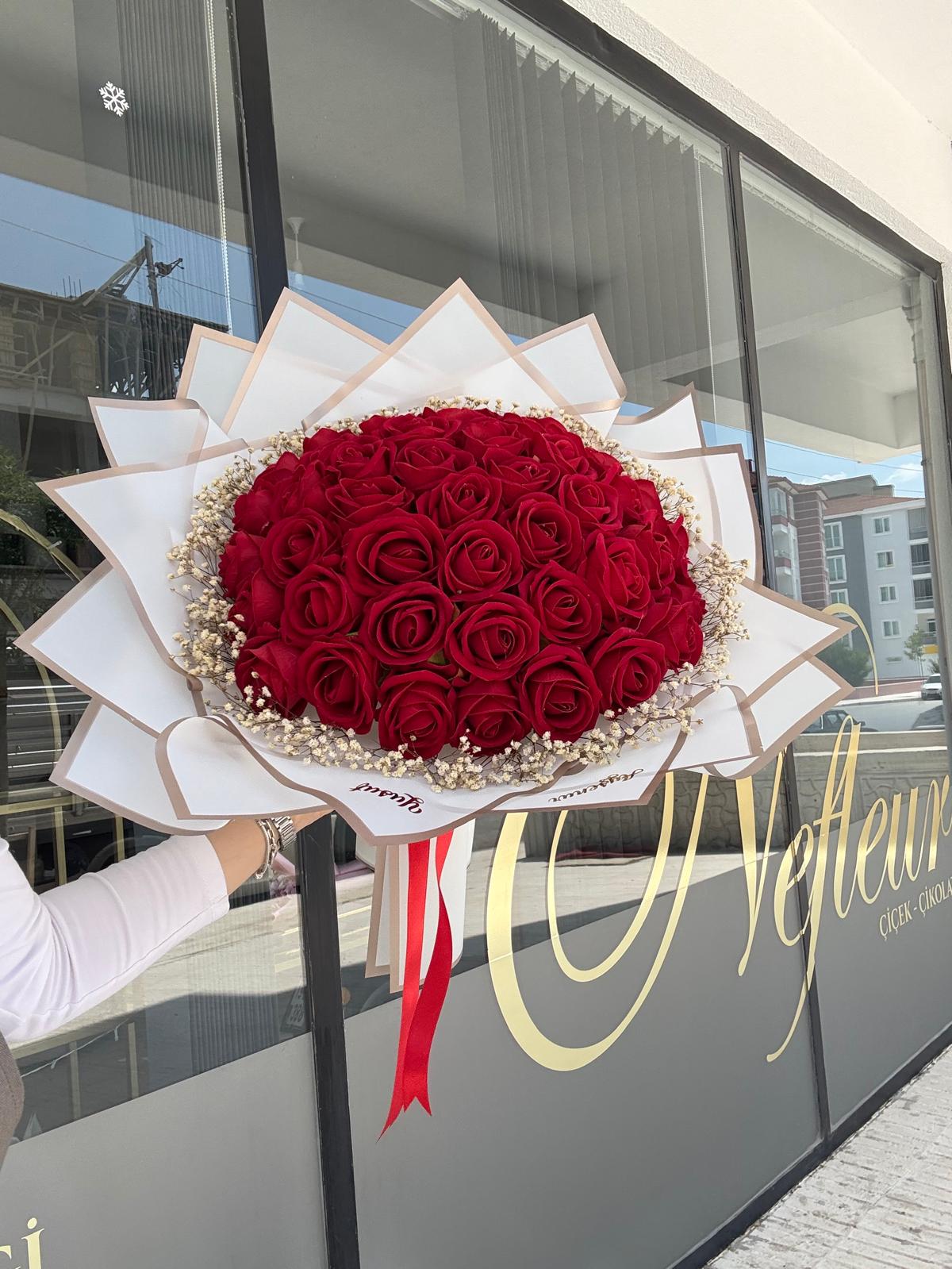 Kaliteli kadife güldür. (Piyasada bulunan ucuz lateks güller değildir)