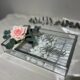 El yapımı cam kutu, kişiye özel pleksi isim ve süsleme ile hazırlanır.